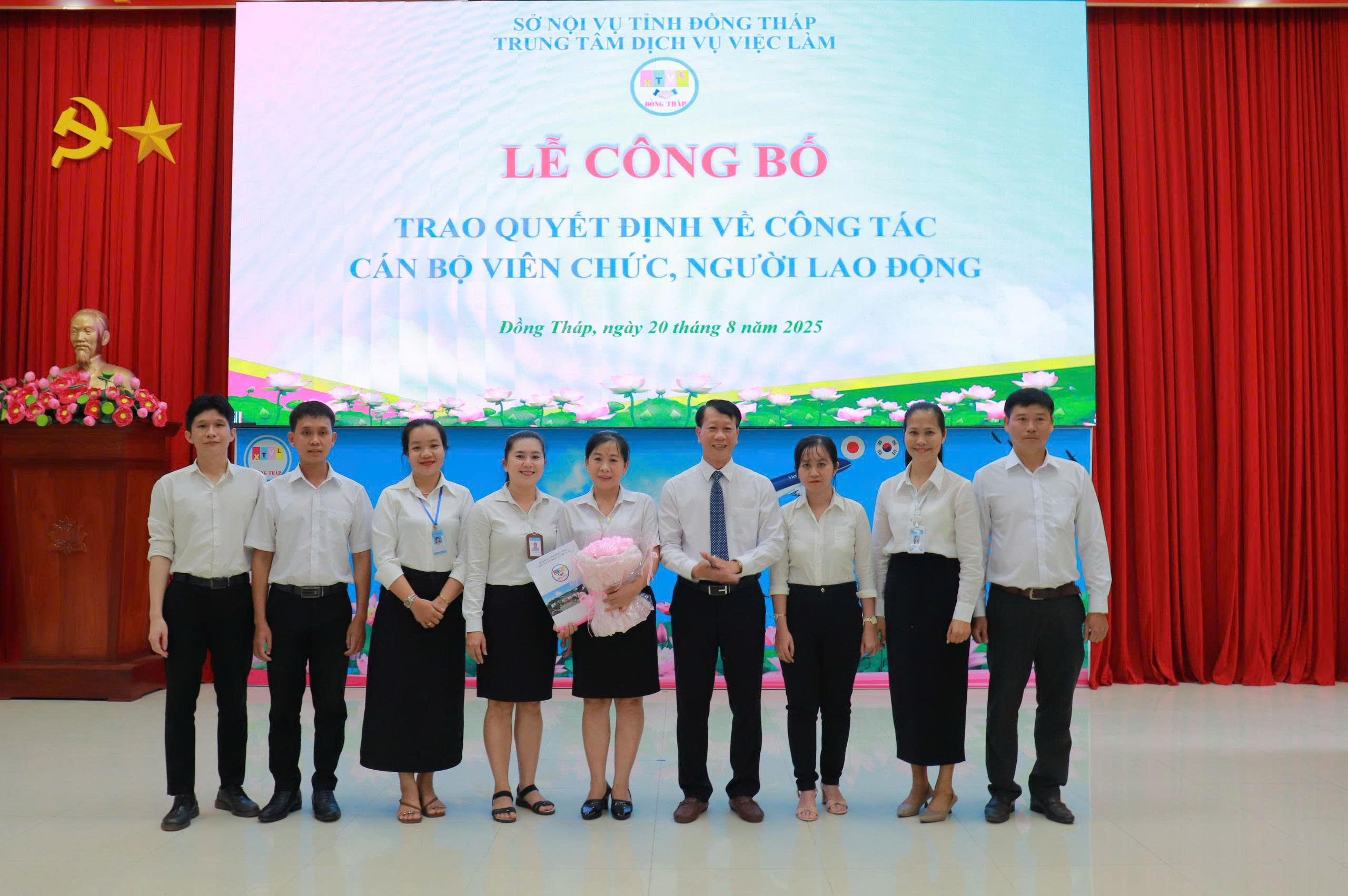 Trung tâm Dịch vụ việc làm Đồng Tháp tổ chức Lễ công bố quyết định về công tác cán bộ, viên chức, người lao động