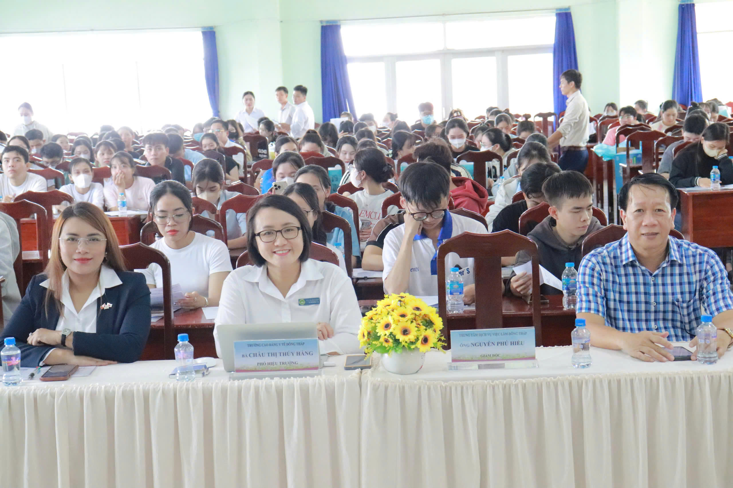 Buổi tư vấn có sự tham dự của bà Châu Thị Thúy Hằng – Phó Hiệu trưởng Trường Cao đẳng Y tế Đồng Tháp; ông Nguyễn Phú Hiếu – Giám đốc Trung tâm Dịch vụ việc làm Đồng Tháp; Ban Giám đốc Trung tâm cùng lãnh đạo các phòng chuyên môn; quý thầy, cô giáo; đại diện các doanh nghiệp và đông đảo sinh viên Trường Cao đẳng Y tế.