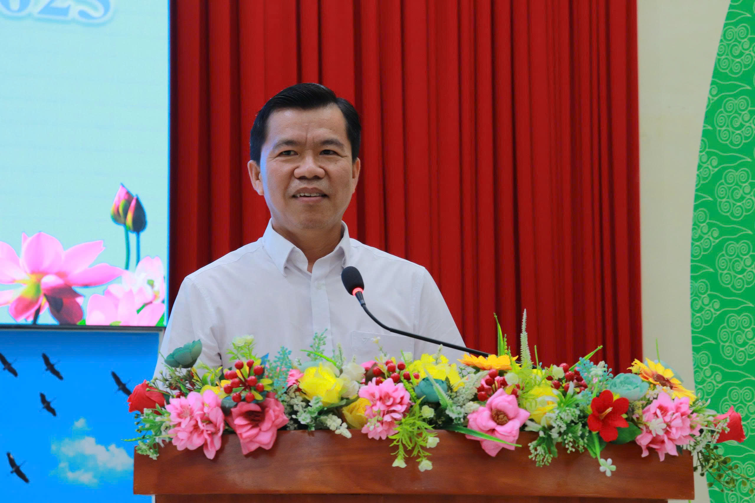 Ông Nguyễn Phú Hiếu – Giám đốc Trung tâm Dịch vụ việc làm Đồng Tháp phát biểu tại buổi Lễ bế giảng
