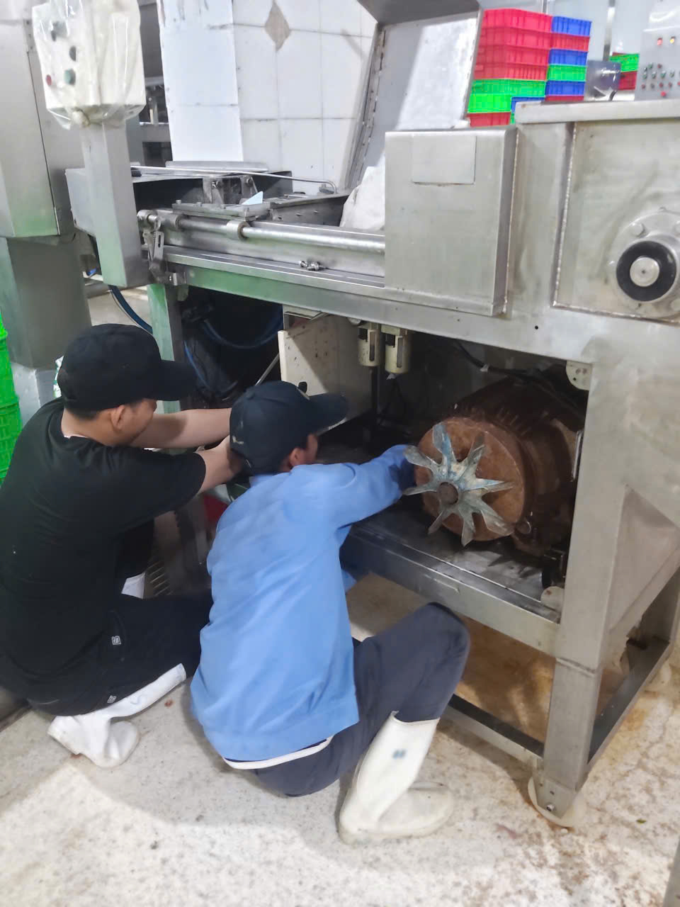 Nguyễn Nhật Khánh (áo xanh) đang bảo trì hệ thống máy tại công ty