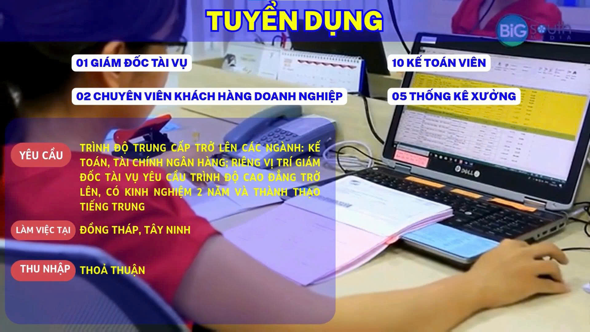 Đồng Tháp, Tây Ninh – Cần tuyển 01 Giám đốc tài vụ, 02 Chuyên viên khách hàng doanh nghiệp, 10 Kế toán viên, 05 Thống kê xưởng