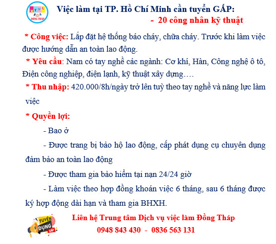 TP. Hồ Chí Minh – Cần tuyển công nhân kỹ thuật