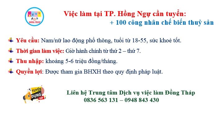 TP. Hồng Ngự – Cần tuyển công nhân chế biến thủy sản
