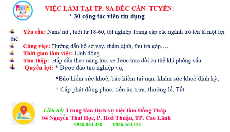TP. Sa Đéc – Cần tuyển 30 cộng tác viên tín dụng